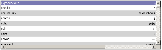 Select the ⅇ from a palette (Constants and Symbols, or Common Symbols) or type the character "e" and bring up the command-completion table (Figure A-2.1) from which the exponential e can be selected. Command completion can be selected from the Tools menu, or implemented by pressing the Escape key (Esc).