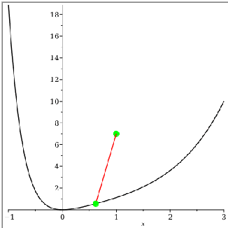 Figure 3.8.5(a) Distance from 1,7 to graph of f