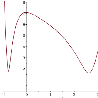CriticalPointsFx,x=−1..3,numeric = −0.7711222385,−0.02316600177,2.610424247