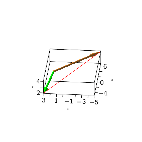 Use the appropriate formula from Table 1.5.1 to calculate the area of the triangle whose vertices are the three points P:1,2,3, Q:5,3,2, and R:7,5,4.