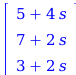 3−2⁢t=5+4⁢s,2+5⁢t=7+2⁢s