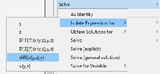 Context Panel: Solve≻Isolate Expression for≻diff(x(y,z),y) (See Figure 4.3.22(b))