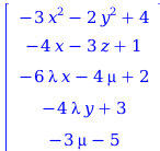 Find the extrema of fx,y,z=2 x+3 y5 z subject to the constraints 3 x2+2 y2=4 and 4 x+3 z=1.