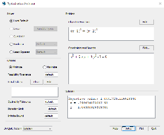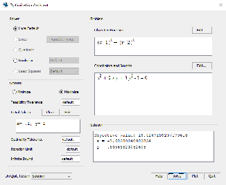 x=2.26987018,y=−1.47891750,λ1=1.60549447,x2−2.⁢x+5.+y2−4.⁢y=13.7154372