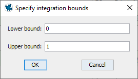 Context Panel: Constructions≻Definite Integral≻t (Complete dialog as per figure.)