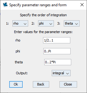 Context Panel: Student Multivariate Calculus≻Integrate≻Iterated Complete the dialogs as per the figures below.