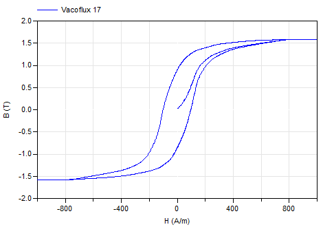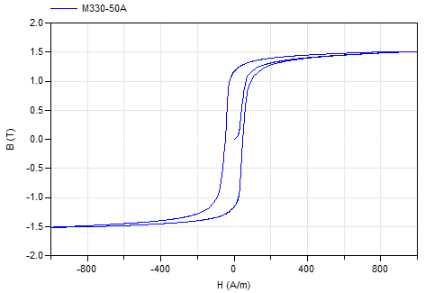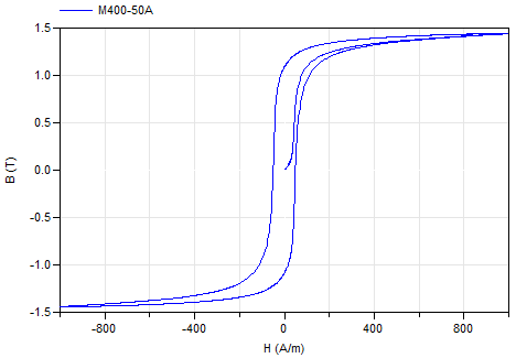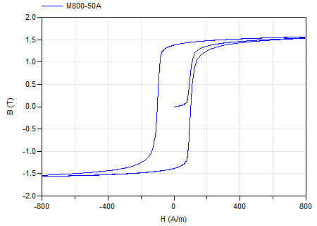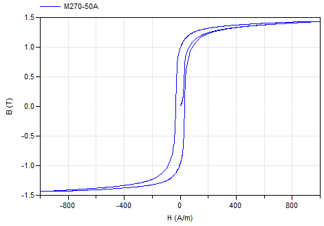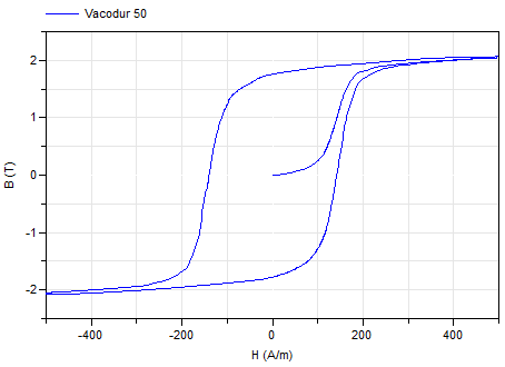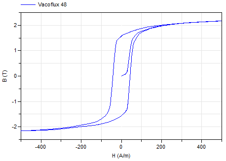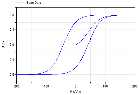 This magnetic material uses data tables to define the B-H hysteresis curve.