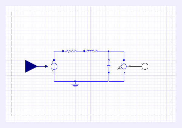 You can enter the subsystem view of a subsystem in the model workspace to view and edit the subsystem contents. The typical view of a subsystem includes a border and a dotted boundary line. For example, here is the detailed view of a subsystem: