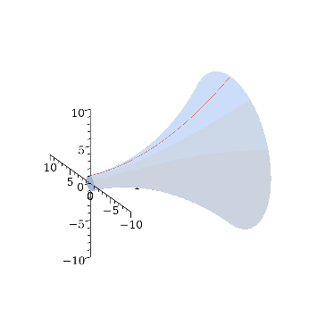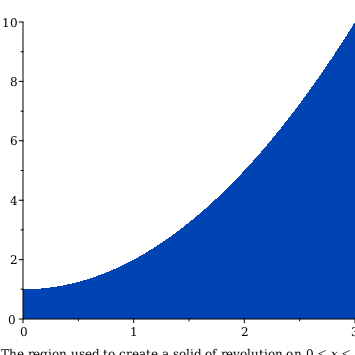 VolumeOfRevolution(x^2+1, x=0..3, output=region);