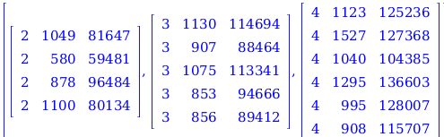 The Statistics package in Maple 16 has been updated to better handle Matrix data sets.  In previous releases, there were instances where the Statistics package did not always accept Matrix data types. In Maple 16, the commands in the Statistics package have been updated to work with Matrix data sets. These commands work on each column of its input Matrix separately. In addition, Maple 16 now allows you to split your data into submatrices based on the value of one column. As a result you are now able to organize and present your data in different configurations in order to better observe particular trends.  For more details see the SplitByColumn help page.