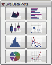 From the Live Data Plots palette, click a plot type to insert this palette item into your document.  To display your dataset, replace the placeholder with your dataset.  You can customize the plot by clicking on options. For more information, see Live Data Plots in Maple 16.