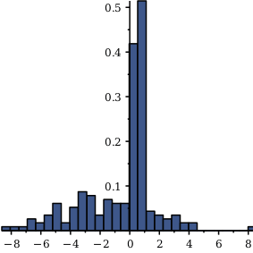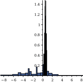 Sometimes a phenomenon that lends itself to display using a histogram changes rapidly in a certain region and not so rapidly in a different region. In the region where the phenomenon changes rapidly, you would like to show a very fine-grained histogram, but elsewhere that would be overkill and be distracting. In this case, you can use the variable-width bins feature for histograms, new in Maple 16.