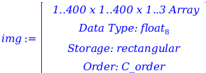 The ImageTools package works with 2-D and 3-D datatype=float[8] Arrays. Such arrays can be imported from files with the Read command, and can be created or manipulated using commands from the ImageTools package.
