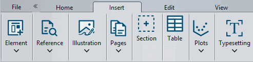 Click a tab (such as Home or Insert) to view it. The layout of the contents in the ribbon changes to fit the size of your Maple window. For example, this is the compact form of the Insert tab. Click an arrow ( ) to see the buttons in a group.