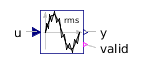 In case of a zero input signal or within the first period of calculation, the boolean output signal valid becomes false to indicate that the calculation result is not valid. Valid calculations are indicated by valid=true.