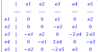 L2:=e1,e2=−2⁢e2,e1,e3=2⁢e3,e2,e3=−e1