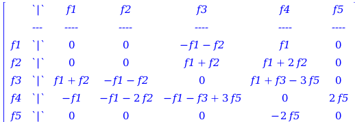L2 ≔ e1,e3=−e1−e2,e1,e4=e1,e2,e3=e1+e2,e2,e4=e1+2⁢e2,e3,e4=e1+e3−3⁢e5,e4,e5=2⁢e5