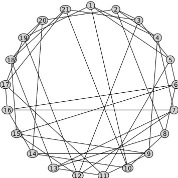 C≔Graph 1: an undirected graph with 21 vertices and 42 edges