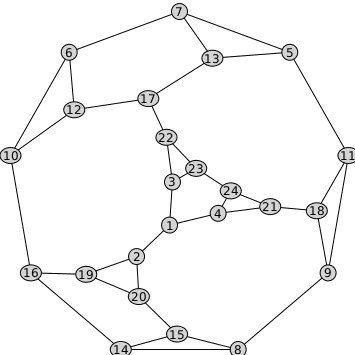 GGraph 1: an undirected graph with 24 vertices and 36 edges