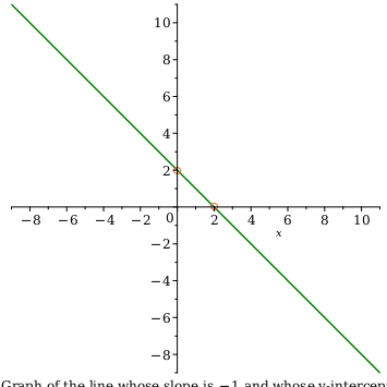 The Line(u, v) command computes the equation of the line, its slope, and the y- and x-intercepts from the data specified by u and v. These values are returned in the form of an expression sequence; therefore, Line(1,2)[1] will obtain the equation of the line with slope 1 and y-intercept 2.