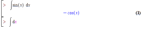 You can also insert input using 1-D Math mode. The input is entered as a one-dimensional sequence of characters. 1-D Math input is red.
