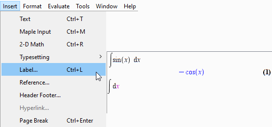 Maple labels the output values sequentially. If you remove or insert an output, Maple automatically re-numbers all equation labels and updates the label references.