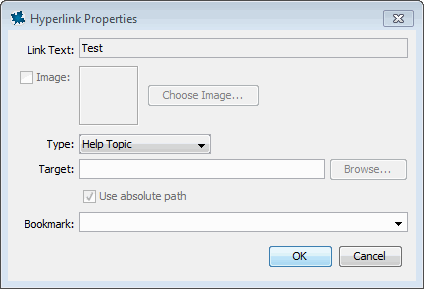 For this example, link the text "horizontal range" to the dictionary page for domain. As indicated in the section for Linking to a Dictionary Topic, select Dictionary Topic in the Type drop-down list, and then enter Definition/domain in the Target field.