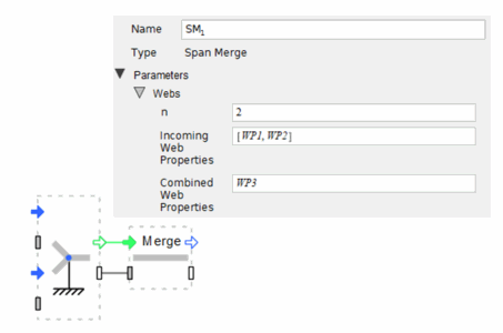 The Span Merge component captures the merging of multiple webs from a Node Webs Merge component and the exit configuration for the merged web.
