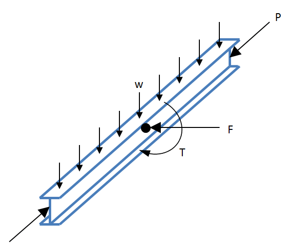 This application performs a design analysis on a simply supported beam with torsional loading for a W10X54 steel beam (as defined by the AISC Steel Shapes Database).
