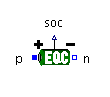 A signal output, soc, gives the state-of-charge of the battery, with 0 being fully discharged and 1 being fully charged.