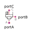The orifice area between A and B is assumed to be a piecewise linear function of the pressure of port A, port B, and port C.