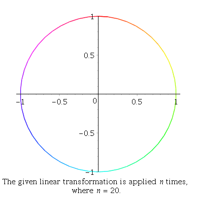 To see the action of the transformation more clearly, use the iterations and trace options. If the norm of the matrix is large, use the logscale option.