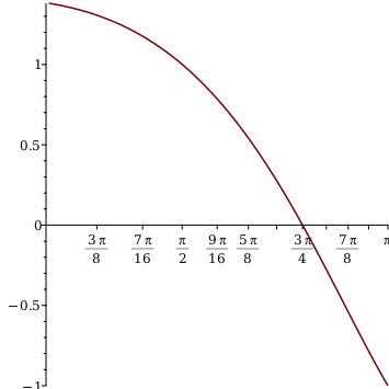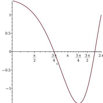 semilogplot⁡cos⁡x+sin⁡x,x=1..2⁢π