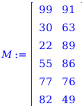 M:=LinearAlgebra:-RandomMatrix⁡6,2,generator=0..100