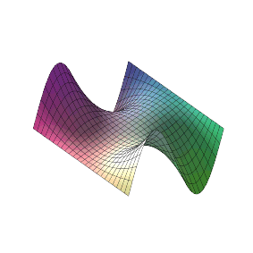 DocumentTools:-Tabulate⁡plot3d⁡y2⁢sin⁡x,x=−π..π,y=−2..2,axes=none,fillcolor=black,width=40