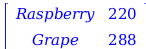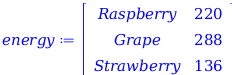 energy := DataSeries(<220, 288, 136>, labels = [Raspberry, Grape, Strawberry]);