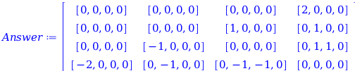 Answer1 ≔ dx2⁢dx2−x2⁢dx2⁢dx3−x2⁢dx3⁢dx2+x22⁢dx3⁢dx3,dx2⁢dx42−x2⁢dx3⁢dx42+dx4⁢dx22−x2⁢dx4⁢dx32,dx4⁢dx4,dx1⁢dx22−x2⁢dx1⁢dx32+dx2⁢dx12−x2⁢dx3⁢dx12−dx3⁢dx34