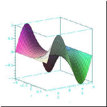 Exploreplot3dsinaxy2,x=π..π,y=1..1,axis=color=cyan,view=1..1,a=1..5.0,componentbackground=Black,fillcolor=LightBlue,fontcolor=DarkBlue