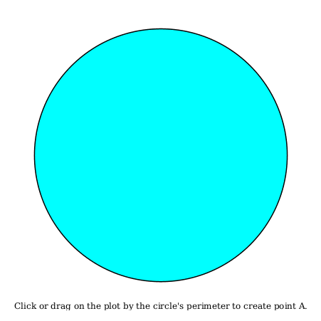 Click on the plot to create points A and B on the circle's perimeter. Adjust the slider to move the x-coordinate, xO , of the point O, where the two lines intersect. Note that the sum of the squares of distances between points A, B, C and D is equal to the square of the diameter of the circle.