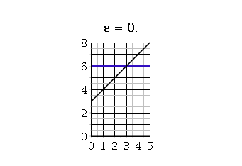 The slider in the animation toolbar controls the value of ϵ. As the slider is moved past the first frame, red and green horizontal lines delineate an ϵ-band around y=6 and red and green vertical lines delineate a corresponding δ-band around x=3.