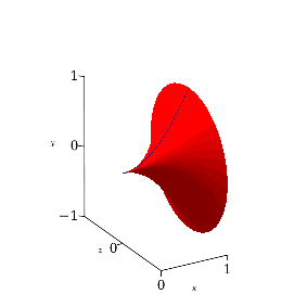 S := display([QQ,a2],scaling=constrained,axes=frame,tickmarks=[2,[0],2],labels=[x,z,y],view=[0..1,-1..1,-1..1], orientation=[-125,65]);