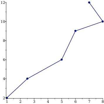 The first calling sequence allows you to plot x-values against y-values. Note that the examples in this section show how a variety of data types (lists, Vectors, Matrices, and Arrays) can be used.