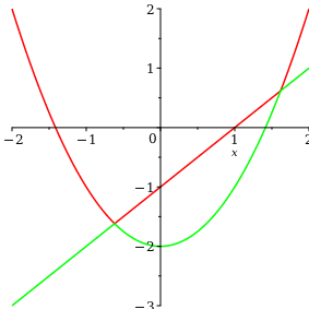 \left\{\begin{array}{cc} x^{2}-2 & x \le -\frac{\sqrt{5}}{2}+\frac{1}{2} \\ x -1 & x \le \frac{\sqrt{5}}{2}+\frac{1}{2} \\ x^{2}-2 & \frac{\sqrt{5}}{2}+\frac{1}{2}<x \end{array}\right.