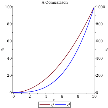 dualaxisplotplotx2,x=0..10,labels=x,x2,legend=x2,plotx3,x=0..10,color=blue,labels=x,x3,legend=x3,title=A Comparison