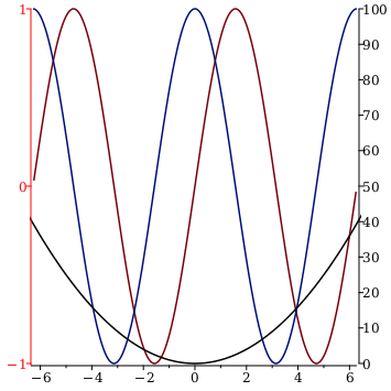 dualaxisplotplotsin,cos,tickmarks=default,3,axis2=color=red,plotx2,tickmarks=default,11,color=black