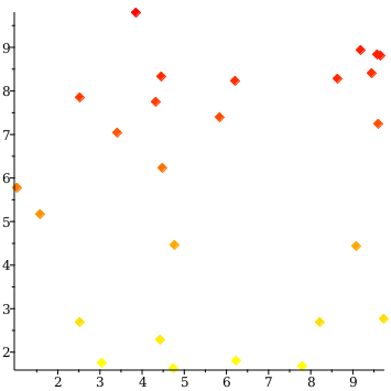 plots:-pointplotMatrix26,2,rand1.0..10.,symbol=soliddiamond,symbolsize=20,colorscheme=ygradient,Yellow,Red,annotations=Arrayseqa..z