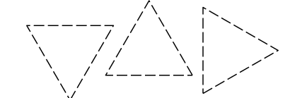 display  polygonbynameinvtriangle, center=3,0,  polygonbynametriangle, center=0,0,  polygonbynametriangle, center=3,0, rotation=90 degrees,size=600,200, style=line, linestyle=dash;