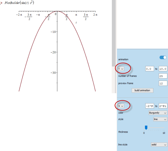 Note: If you are animating a plot with more than one parameterized variable, you can change the sequence order of these variables using the options in the context panel:
