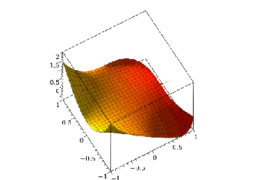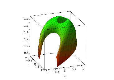 expr  5x10+1x2y2+y+122+x132142               +y132+x+14211610:rng   x = 1.1 .. 1.1, y = 1.1 .. 1.1:opts  colorscheme=zgradient,red,green, orientation=20,70,0:
