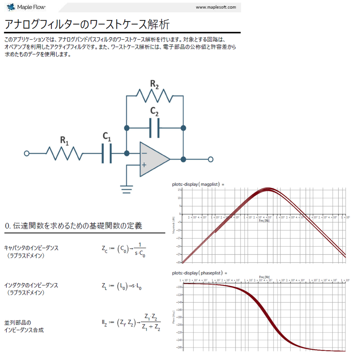 アナログフィルターのワーストケース解析 - Maple Application Center